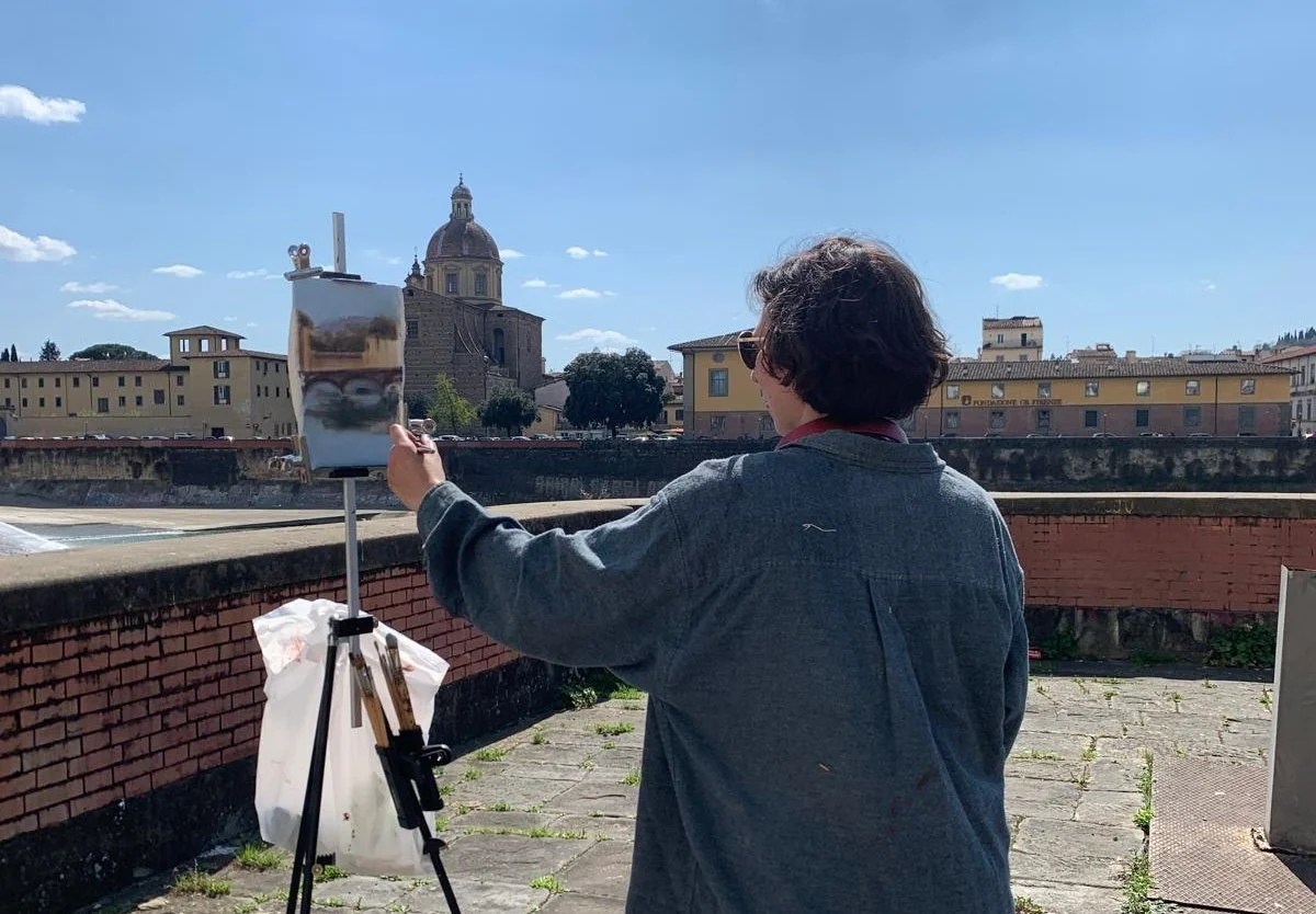 After a stint in London where she explored the contemporary art world and exhibited at The Holy Art, Dalston, and Boomer Gallery, London Bridge, Ruby settled back in Florence where she now works out of a studio in Santo Spirito and in the open air. Ruby paints entirely under natural light, entirely from life, imagination, or reference sketches, using traditional Italian methods and materials (hand-ground archival pigments, hand-primed linen canvas) without the use of photography or anything digital.